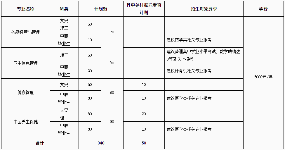 第四章 招生专业、计划及收费标准
